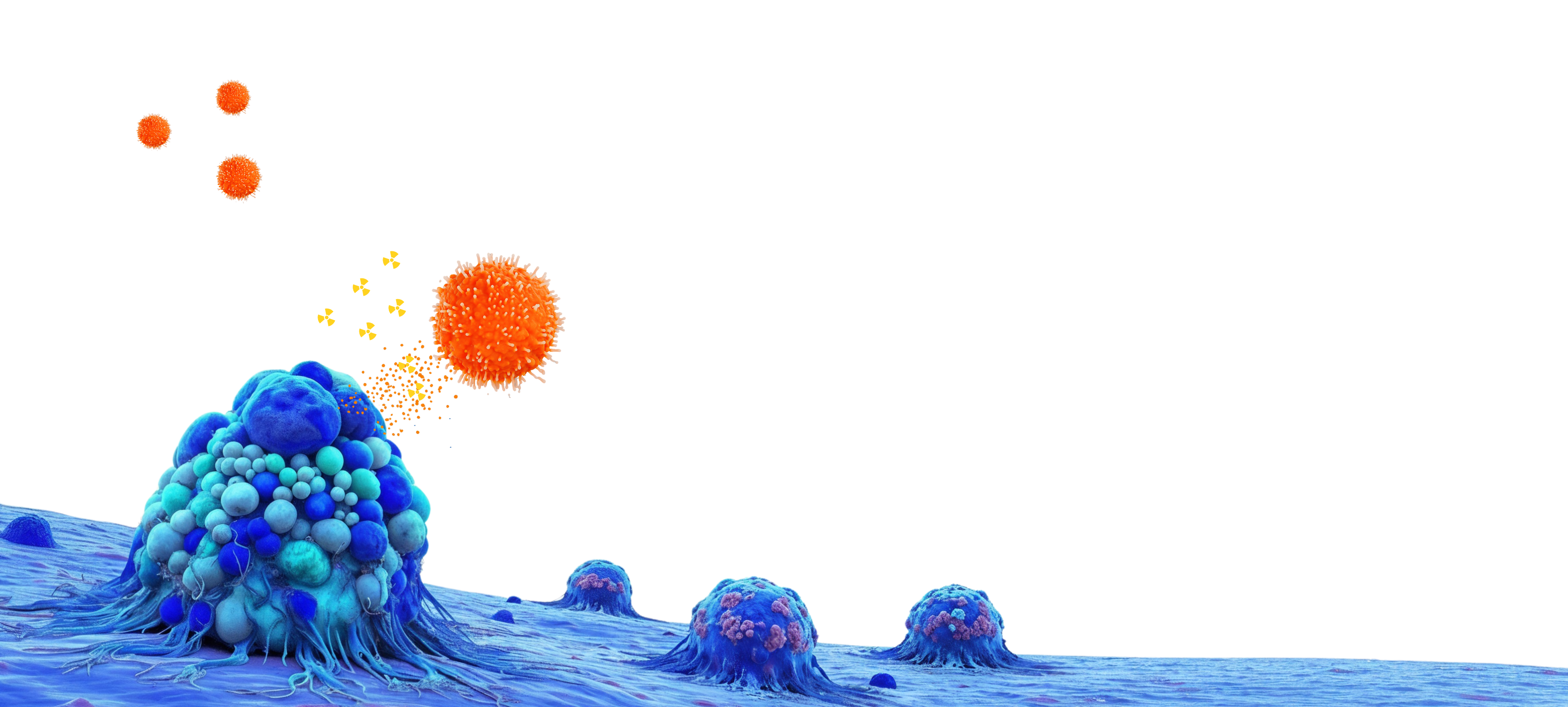 When cancer wages war, our bodies send T and NK immune cells to fight the battle. They find tumors and release granzyme B, a protein that acts like “bullets” entering tumors and triggering apoptosis,[IV]Biology depiction. Descriptions of granzyme B “bullets” and apoptosis are simplified explanations of complex immune mechanisms. Imaging detects signals consistent with immune activation; it does not directly visualize apoptosis or confirm cell death in patients. a signal that instructs the tumor to self-destruct. We harness the power of those granzyme B bullets, the key to our groundbreaking radiodiagnostic and radiotherapeutic immunotherapy solutions.[I]Investigational status. CSB-321 and CSB-421 are investigational product candidates. They have not been approved by the U.S. FDA or any other regulatory authority for safety or efficacy. Any references to potential clinical utility reflect development goals only.