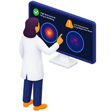In clinical trials to date, CSB-321 uptake has been >95% sensitive and specific for overall response.[IV]Performance metrics. Any stated sensitivity/specificity, or similar metrics reflect study-level results under defined protocols and populations and may not generalize to other indications, sites, or patient cohorts. These scans were performed as early as 14 days after starting therapy.[II]Comparative & timing context. Statements comparing CSB-321 to CT/MRI/FDG or lab markers, and any earlier readout claims (e.g., ≈approximately 14 days), are context-specific to the study protocols (acquisition timing, analysis methods, reader criteria) and do not guarantee individual outcomes, regulatory decisions, or clinical benefits. We are continuing to investigate how we can enable earlier decisions to continue, switch, or stop treatment, and support earlier go/no-go choices in studies.[III]Economic/operational impact. References to cost/time savings, de-risking, shorter trials, and earlier go/no-go reflect potential operational advantages observed or anticipated in studies; they do not guarantee lower overall development costs, faster approvals, or commercial success.